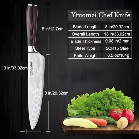 Cuchillo de Chef n1 de 8 pulgadas fabricado en acero inoxidable alemán con alto contenido de carbono, mango ergonómico, ultra afilado, la mejor opción para cocina y restaurante